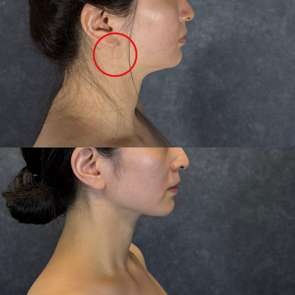 ① 耳下周囲の脂肪を意識した「顔の脂肪吸引」