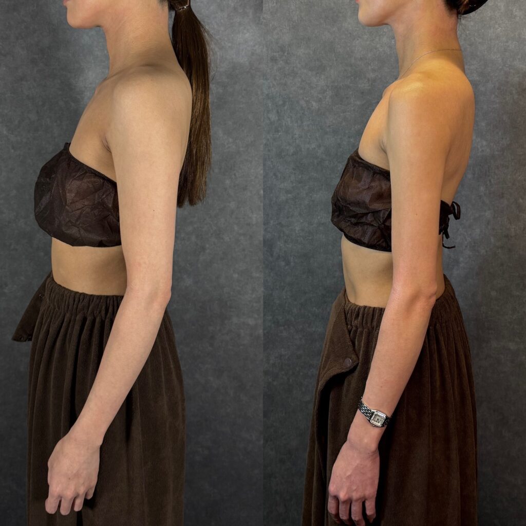 脂肪を取ると弛みが出るため、直線的な腕になりにくい。