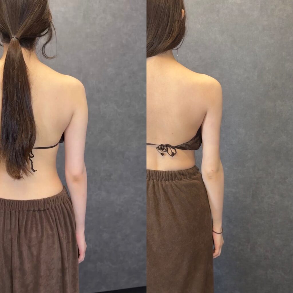 手術前後で食事・運動管理を継続している方ほど、二の腕の“薄さ”と“角度”がきれいに出やすい。