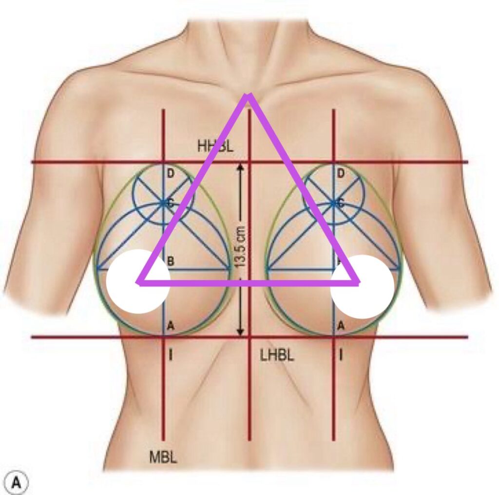 です。augmentation-mastopexy の計画では、希望する体積だけでなく、乳房寸法、左右差、乳頭位置、乳房下溝位置など複数要素の評価が必要です。