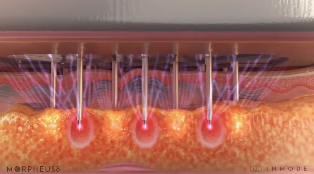 Morpheus8(RFマイクロニードル)は、針による物理的ドラッグデリバリーと、RF(高周波)による熱刺激を同時に加えることで、真皮の再構築を強力に促進します。