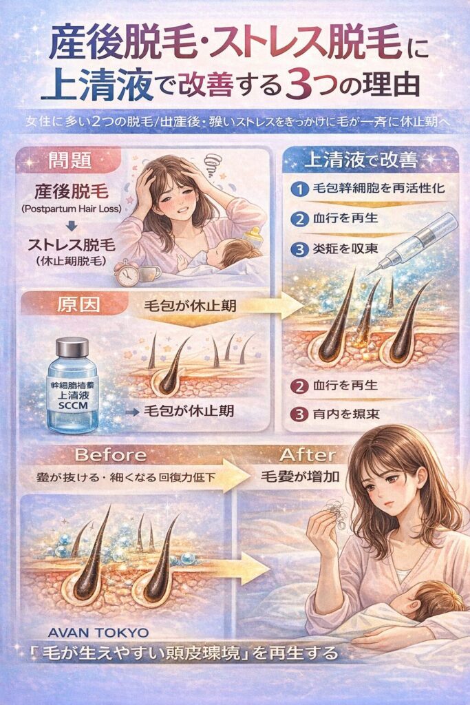 産後脱毛とストレス脱毛:幹細胞培養上清液で何が変えられるのか2026.03.07