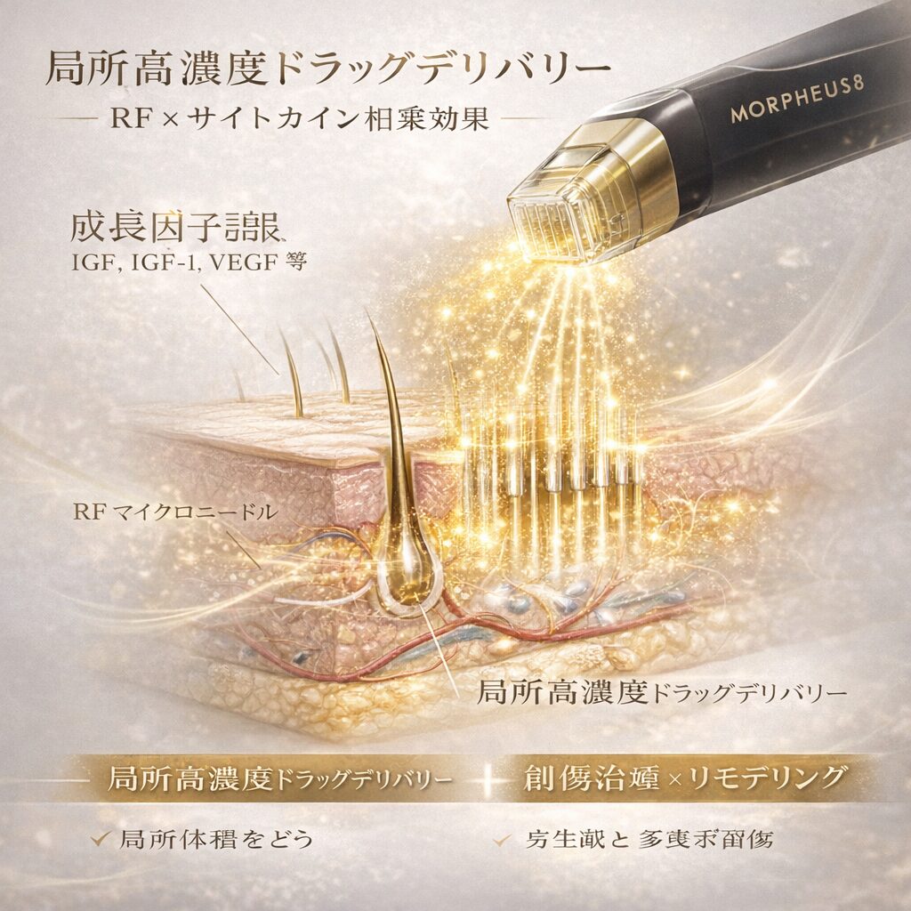 - 同時にRF(高周波)で微小損傷(micro-injury)を誘導