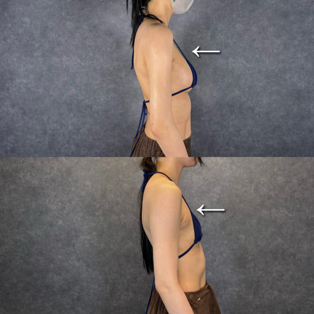 - Giữ quá nhiều mỡ phụ vú → ngực trông bị xòe ra ngoài
