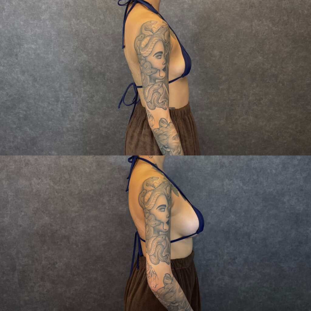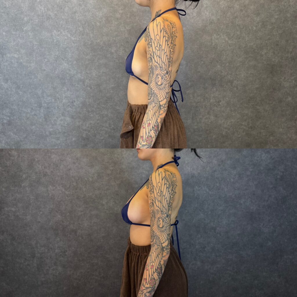 Dưới đây là kết quả sau 3 tháng của bệnh nhân nữ 26 tuổi thực hiện hút mỡ tay toàn bộ + nâng ngực Hybrid (túi Motiva + cấy mỡ).