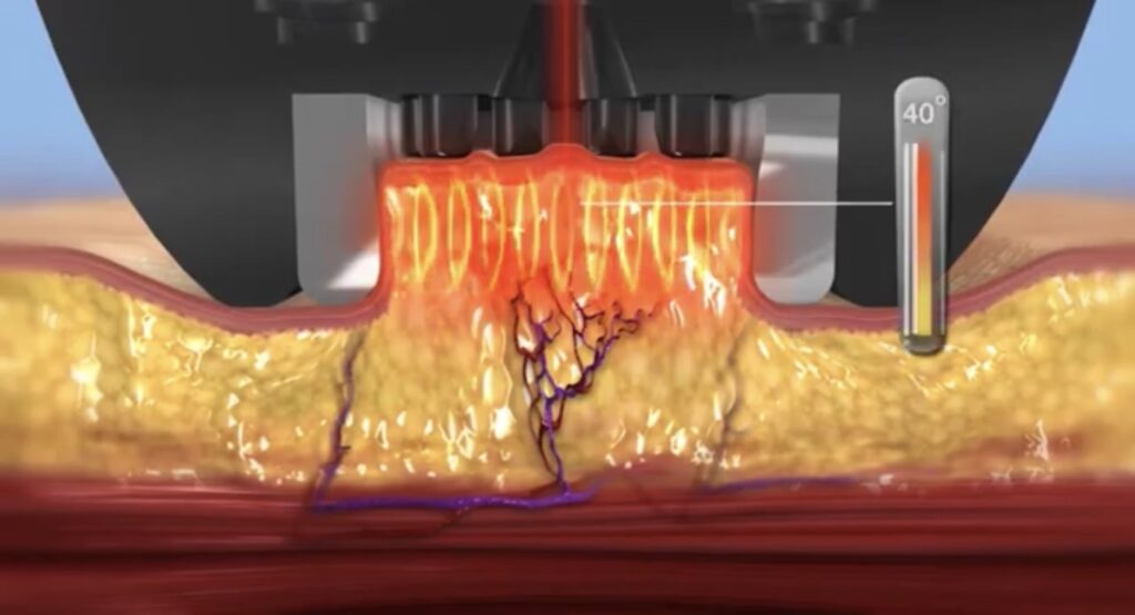 在治疗过程中,射频能量会将皮下组织加热到约 40–43°C。