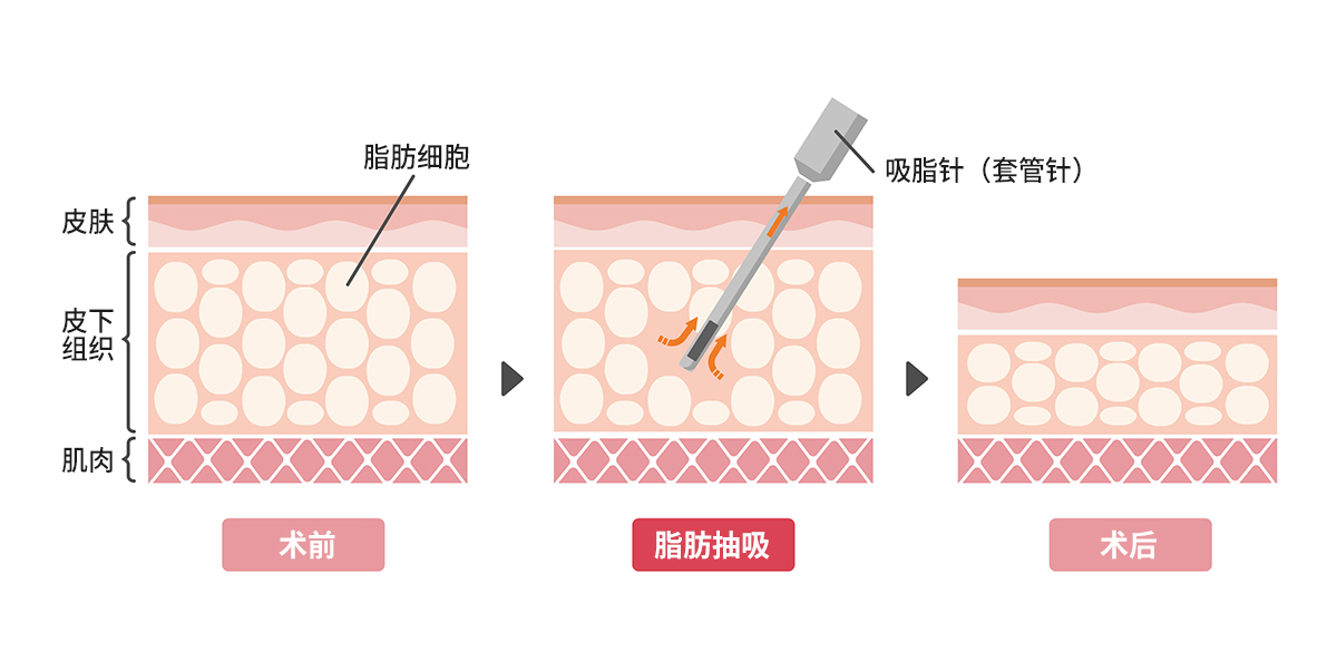 腹部和腰部吸脂使用专用吸管(カニューレ)直接去除多余脂肪细胞。